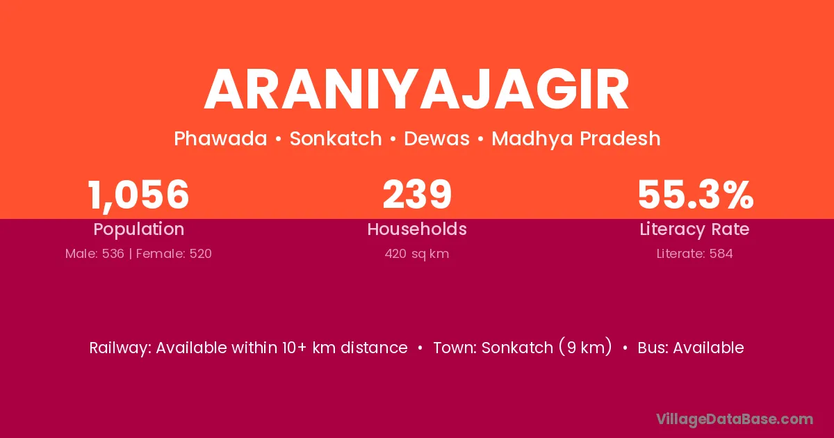 Araniyajagir village has a total population of 1,056 people, of which 536 are males and 520 are females.