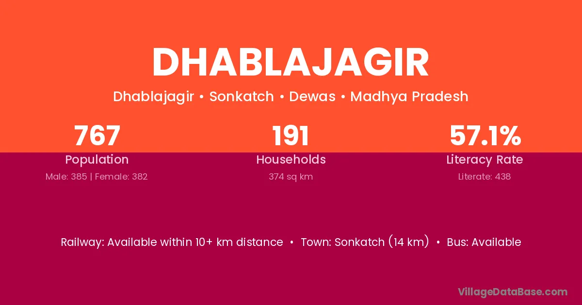 Sonkatch (14 km) is the nearest town to Dhablajagir village for major economic activities and is located approximately 14 km away.