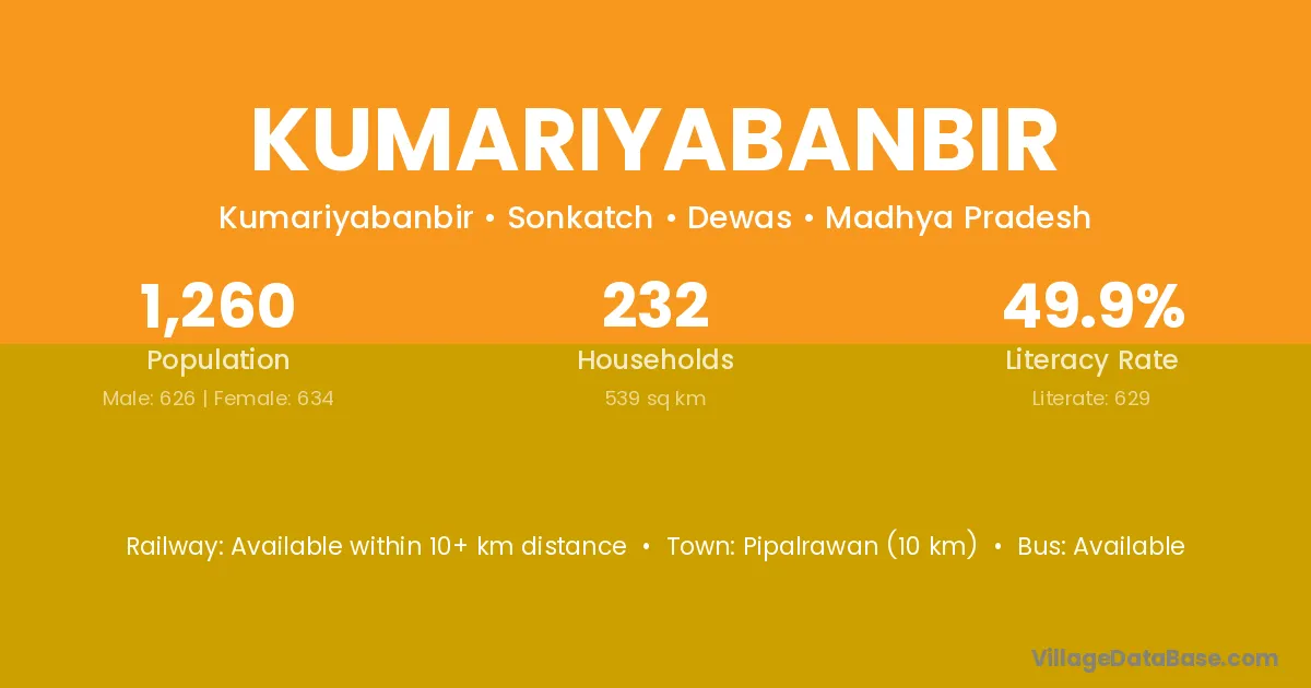 Kumariyabanbir village has a total population of 1,260 people, of which 626 are males and 634 are females.