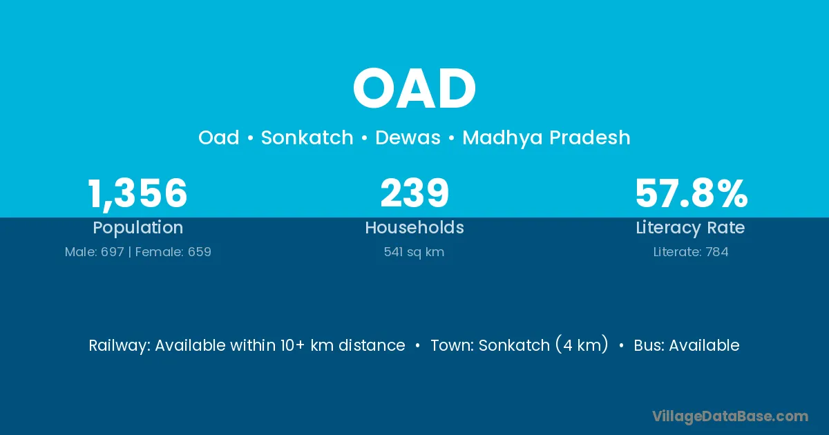 Sonkatch (4 km) is the nearest town to Oad village for major economic activities and is located approximately 4 km away.