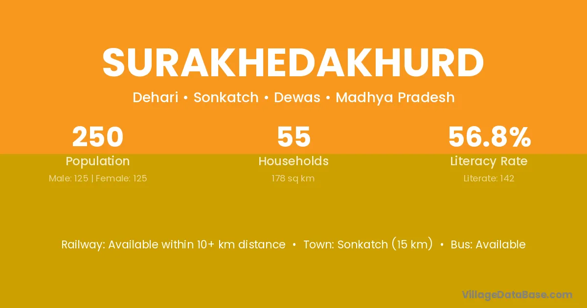 Sonkatch (15 km) is the nearest town to Surakhedakhurd village for major economic activities and is located approximately 15 km away.