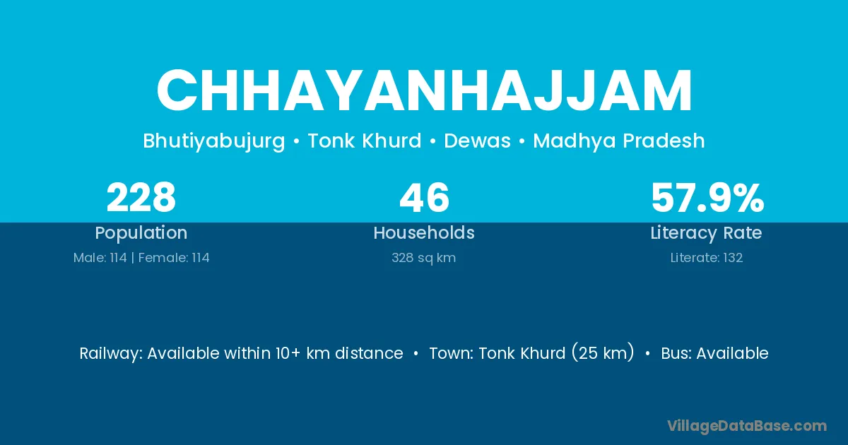 Tonk Khurd (25 km) is the nearest town to Chhayanhajjam village for major economic activities and is located approximately 25 km away.