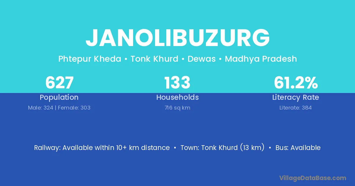 Tonk Khurd (13 km) is the nearest town to Janolibuzurg village for major economic activities and is located approximately 13 km away.