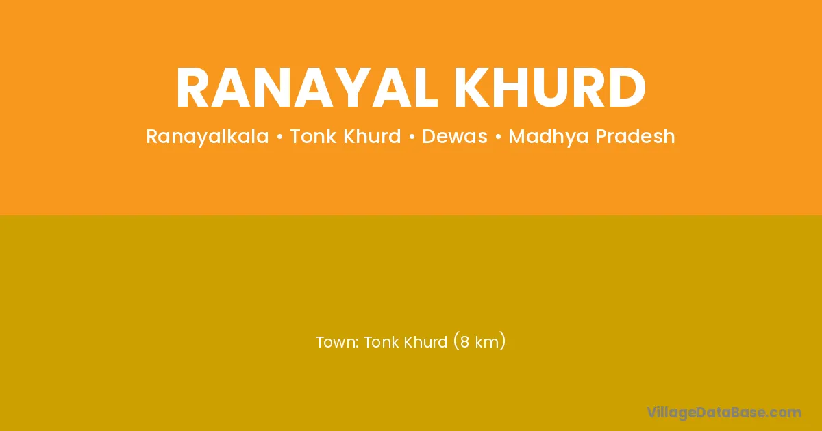 Tonk Khurd (8 km) is the nearest town to Ranayal Khurd village for major economic activities and is located approximately 8 km away.