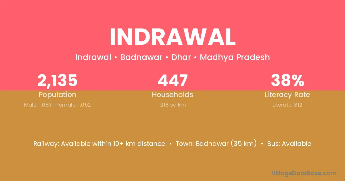 Badnawar (35 km) is the nearest town to Indrawal village for major economic activities and is located approximately 35 km away.