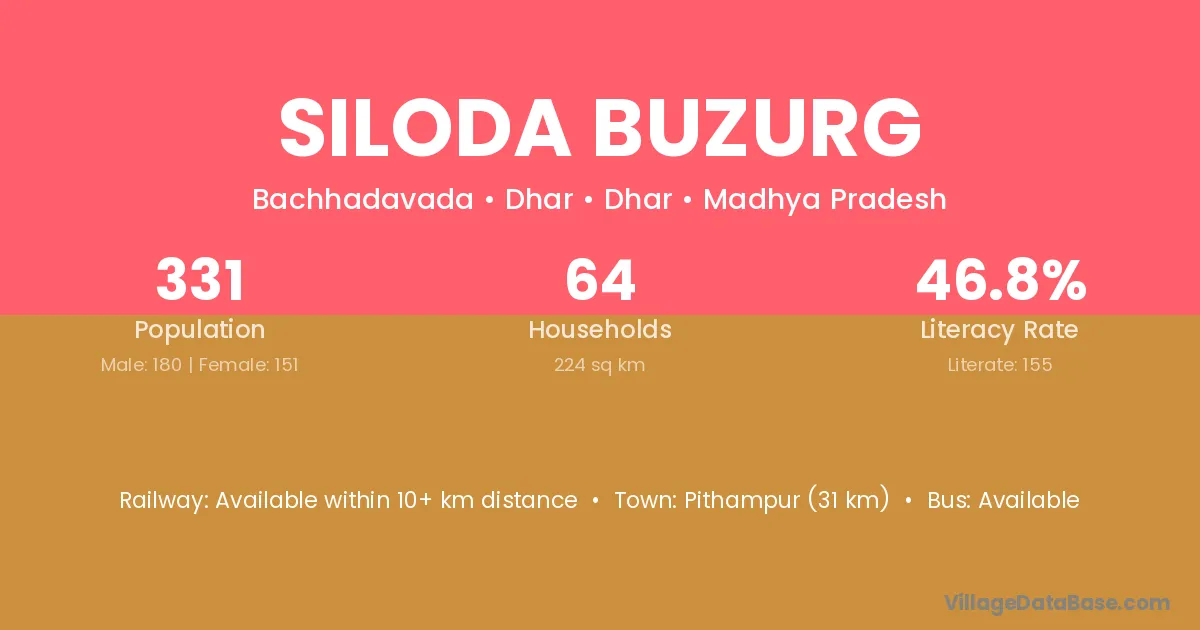 Badnawar is the nearest town to Siloda Buzurg village for major economic activities