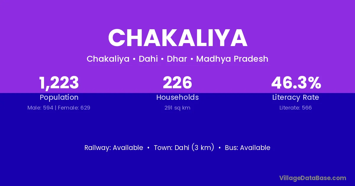 Dahi (3 km) is the nearest town to Chakaliya village for major economic activities and is located approximately 3 km away.