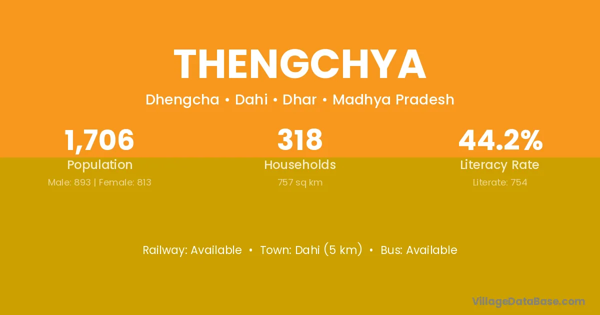 Dahi (5 km) is the nearest town to Thengchya village for major economic activities and is located approximately 5 km away.