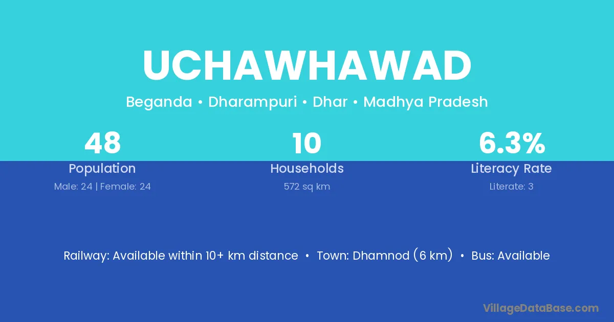 Dhamnod (6 km) is the nearest town to Uchawhawad village for major economic activities and is located approximately 6 km away.