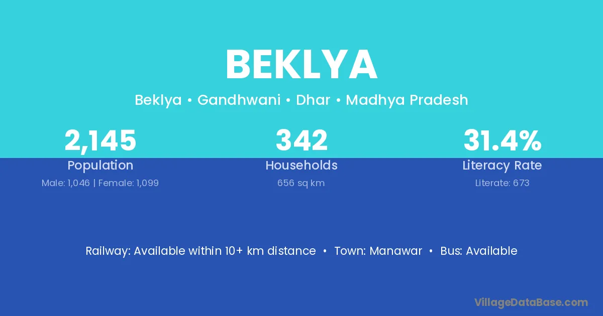 Manawar is the nearest town to Beklya village for major economic activities
