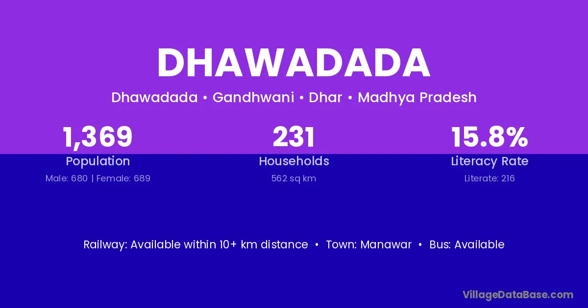 Manawar is the nearest town to Dhawadada village for major economic activities