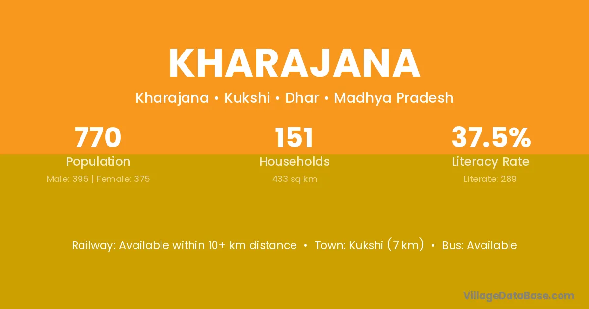 Kukshi (7 km) is the nearest town to Kharajana village for major economic activities and is located approximately 7 km away.
