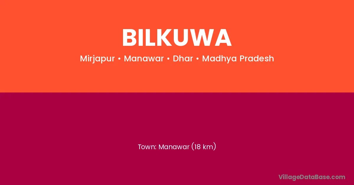 Manawar (18 km) is the nearest town to Bilkuwa village for major economic activities and is located approximately 18 km away.