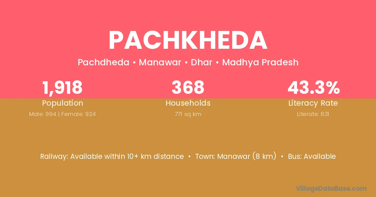Manawar (8 km) is the nearest town to Pachkheda village for major economic activities and is located approximately 8 km away.
