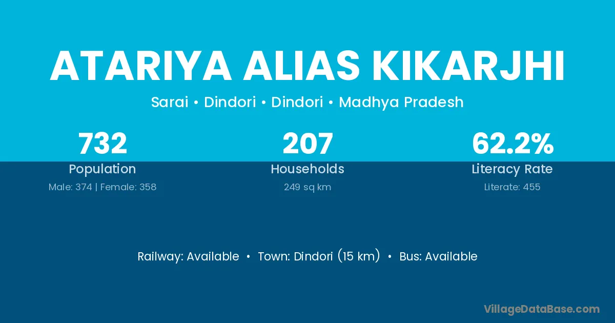Atariya Alias Kikarjhi village has a total population of 732 people, of which 374 are males and 358 are females.