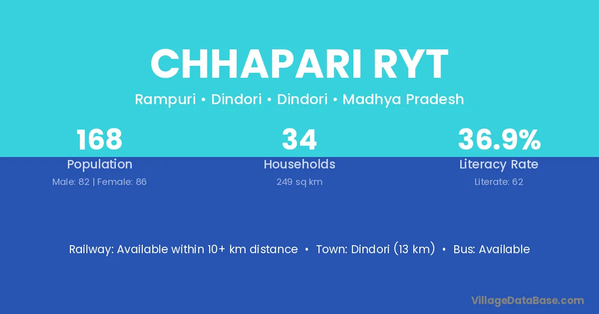 Dindori (13 km) is the nearest town to Chhapari Ryt village for major economic activities and is located approximately 13 km away.