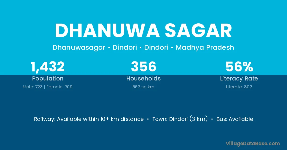 Dindori (3 km) is the nearest town to Dhanuwa Sagar village for major economic activities and is located approximately 3 km away.
