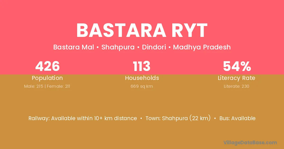 Bastara Ryt village has a total population of 426 people, of which 215 are males and 211 are females.