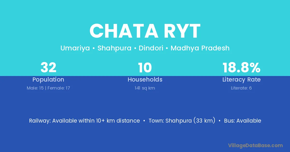 The literacy rate of Chata Ryt village is 18.75%. Male literacy stands at 26.67% and female literacy at 11.76%.