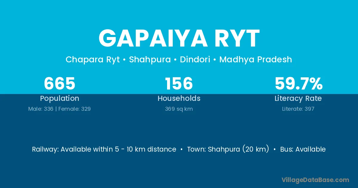 Gapaiya Ryt village has a total population of 665 people, of which 336 are males and 329 are females.