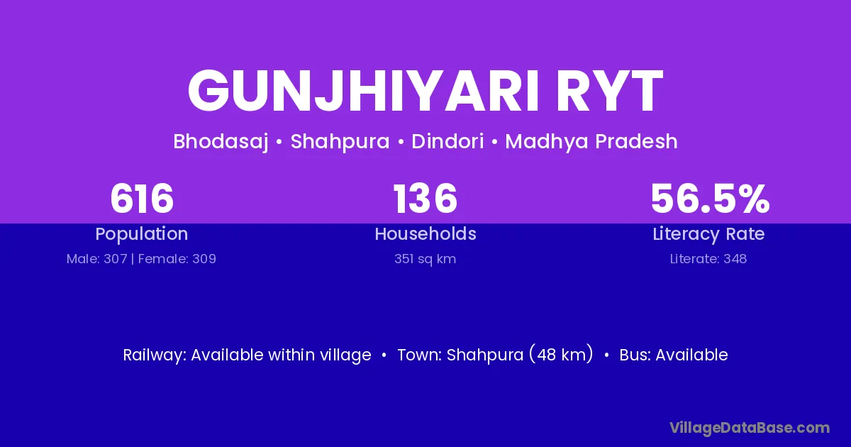 Gunjhiyari Ryt village has a total population of 616 people, of which 307 are males and 309 are females.
