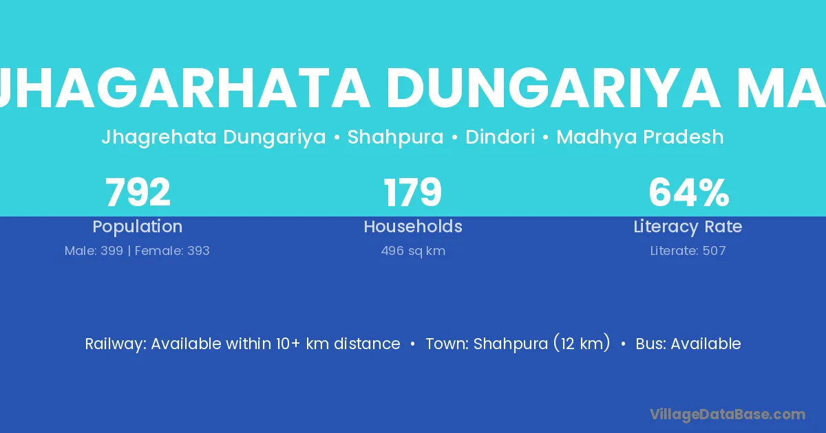 Shahpura (12 km) is the nearest town to Jhagarhata Dungariya Mai village for major economic activities and is located approximately 12 km away.