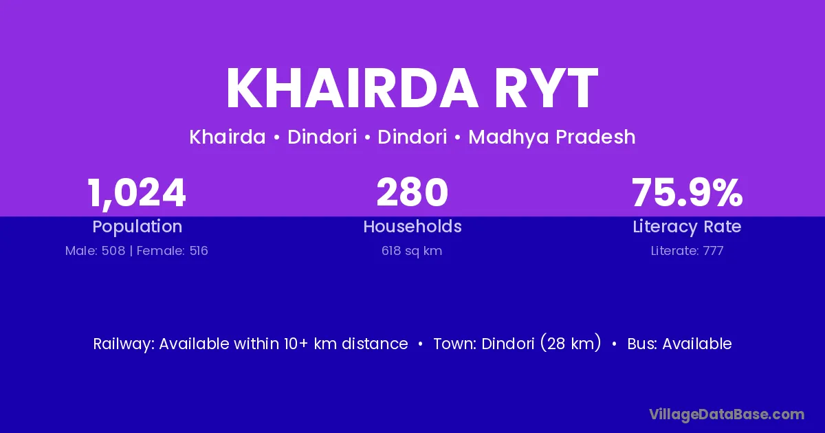 Shahpura (30 km) is the nearest town to Khairda Ryt village for major economic activities and is located approximately 30 km away.
