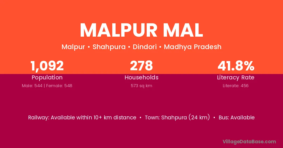 Malpur Mal village has a total population of 1,092 people, of which 544 are males and 548 are females.
