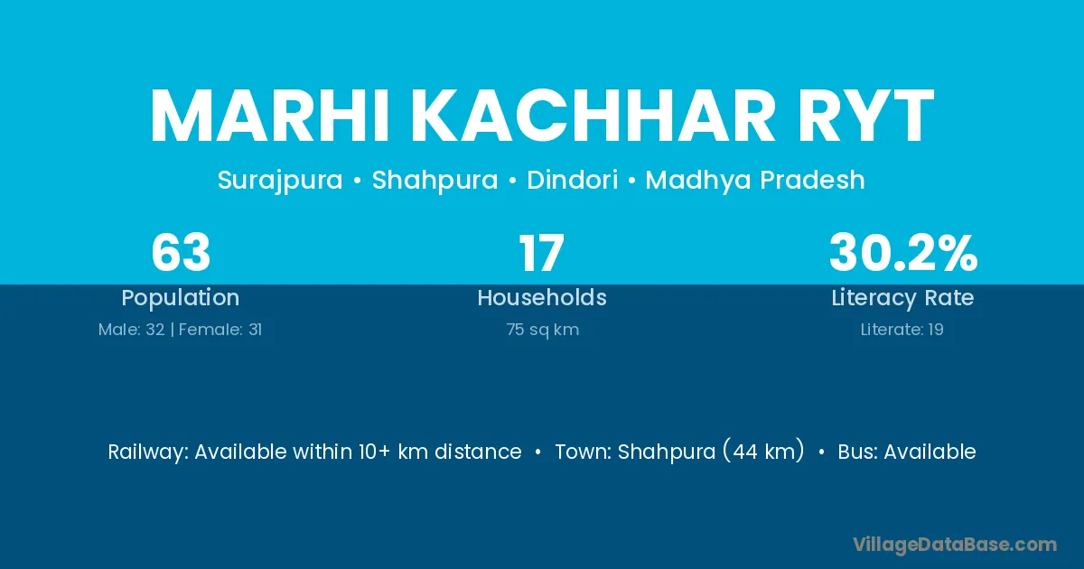 Marhi Kachhar Ryt village has a total population of 63 people, of which 32 are males and 31 are females.