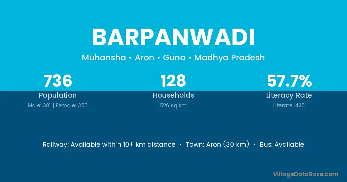 Barpanwadi village has a total population of 736 people, of which 381 are males and 355 are females.