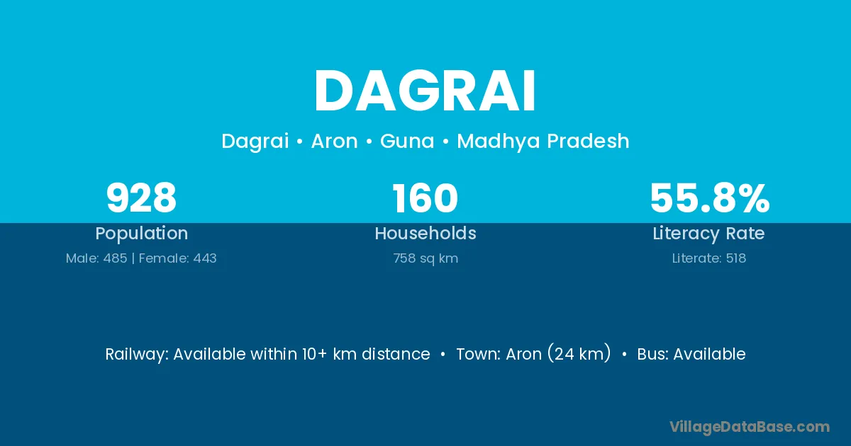 Aron (24 km) is the nearest town to Dagrai village for major economic activities and is located approximately 24 km away.