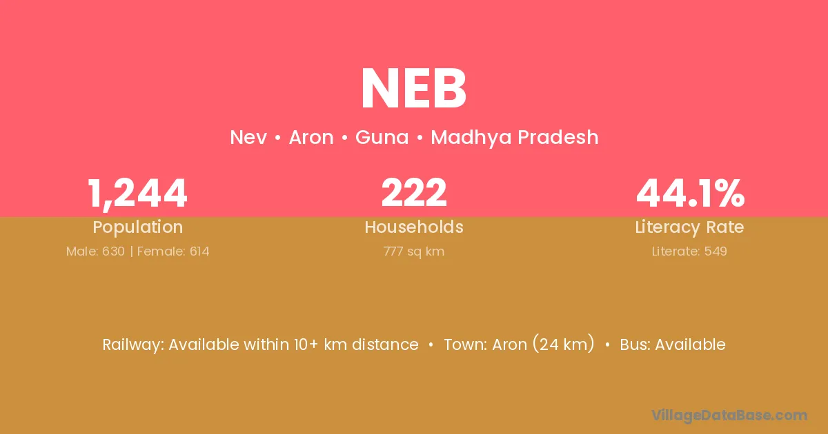 Neb village has a total population of 1,244 people, of which 630 are males and 614 are females.