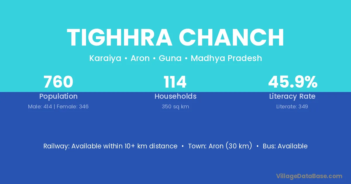 Aron (30 km) is the nearest town to Tighhra Chanch village for major economic activities and is located approximately 30 km away.