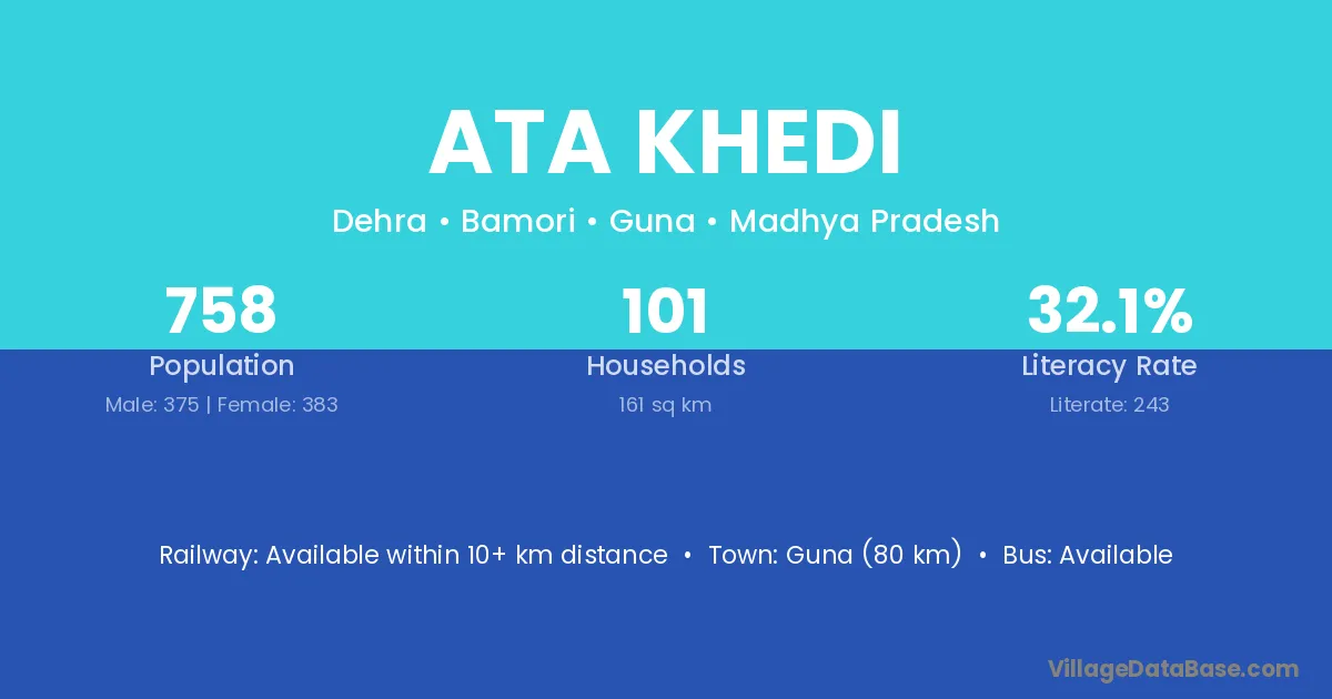Ata Khedi village has a total population of 758 people, of which 375 are males and 383 are females.
