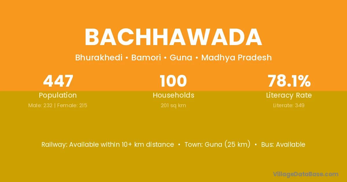 Guna (25 km) is the nearest town to Bachhawada village for major economic activities and is located approximately 25 km away.