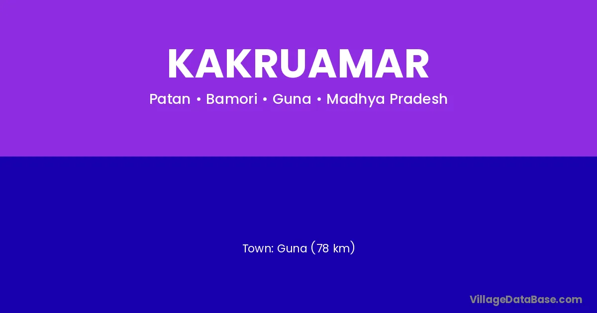 Guna (78 km) is the nearest town to Kakruamar village for major economic activities and is located approximately 78 km away.