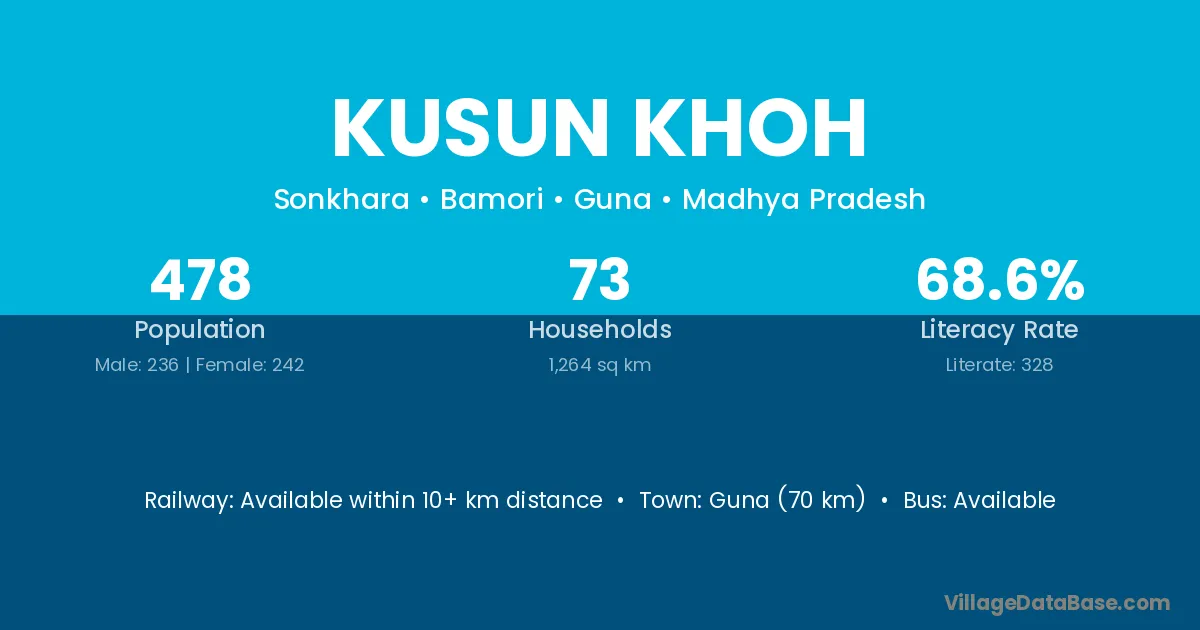 Guna (70 km) is the nearest town to Kusun Khoh village for major economic activities and is located approximately 70 km away.