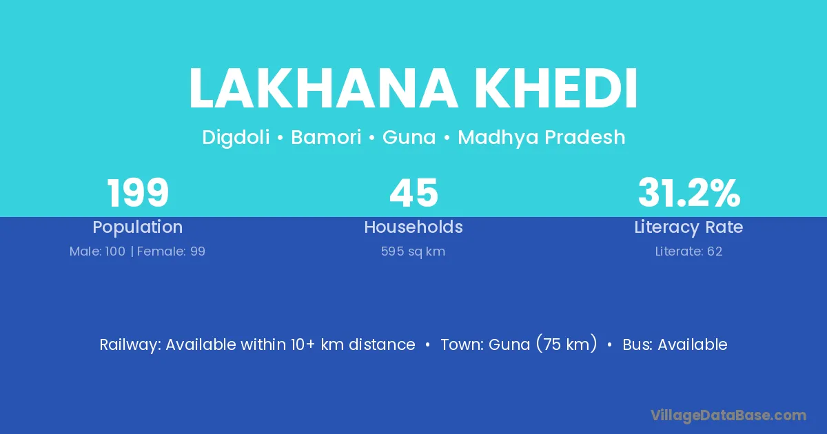 Guna (75 km) is the nearest town to Lakhana Khedi village for major economic activities and is located approximately 75 km away.