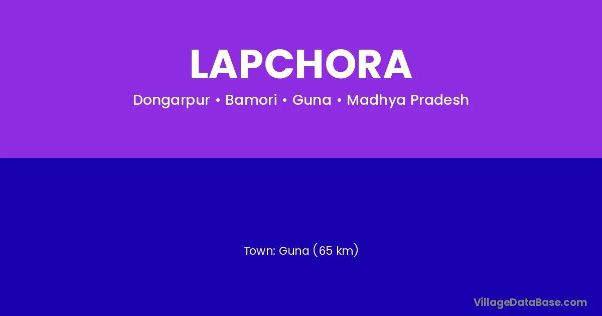 Guna (65 km) is the nearest town to Lapchora village for major economic activities and is located approximately 65 km away.