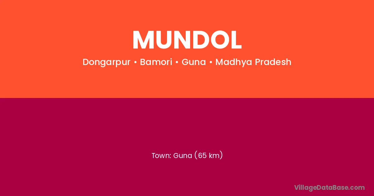 Guna (65 km) is the nearest town to Mundol village for major economic activities and is located approximately 65 km away.