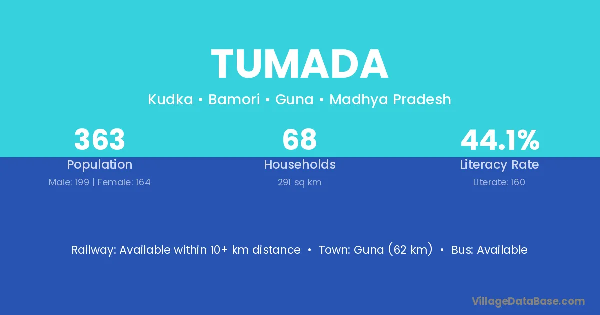 Guna (62 km) is the nearest town to Tumada village for major economic activities and is located approximately 62 km away.