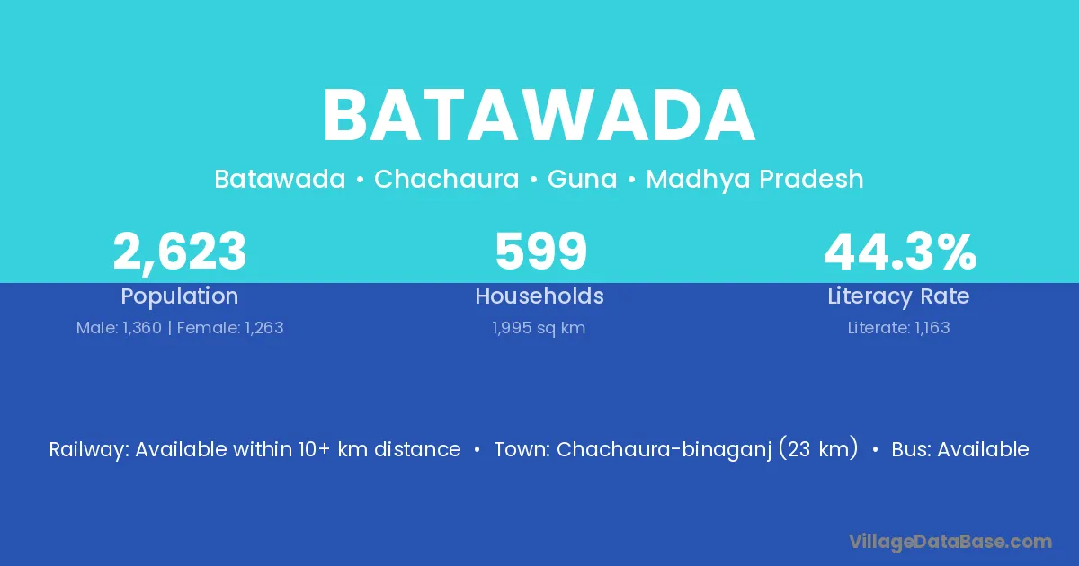 Chachaura-binaganj (23 km) is the nearest town to Batawada village for major economic activities and is located approximately 23 km away.