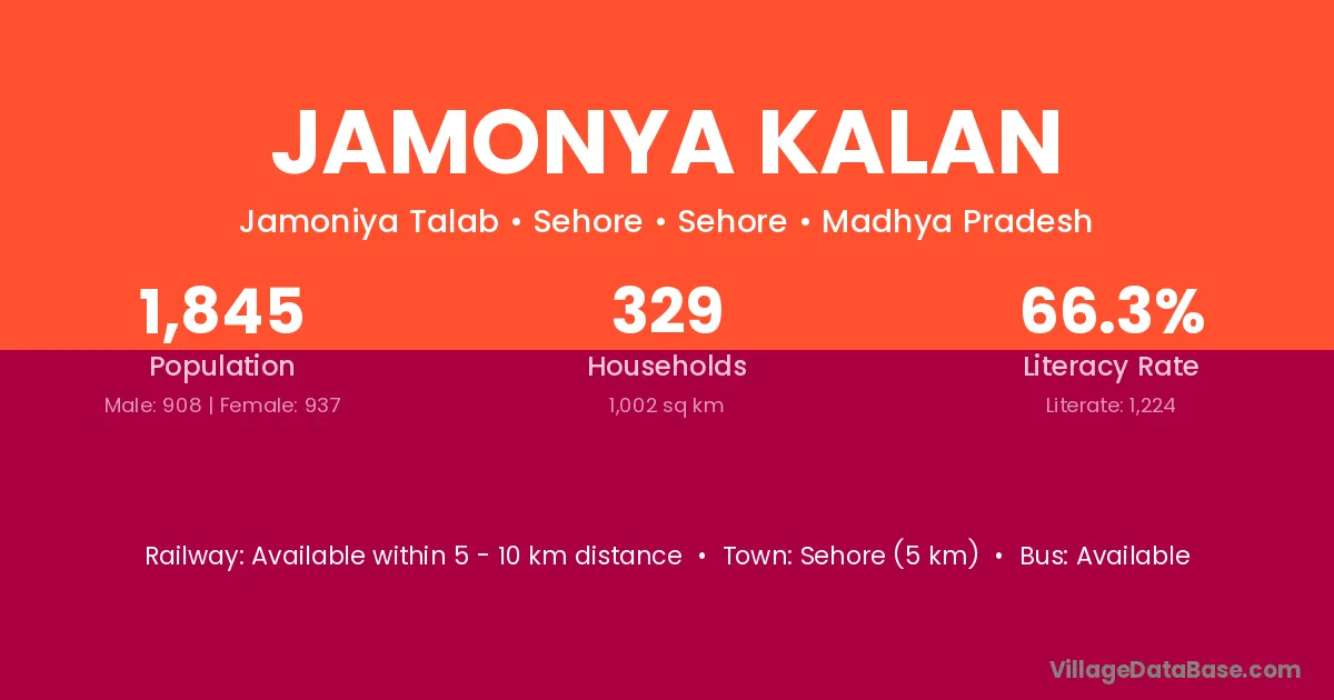 Chachaura-binaganj (11 km) is the nearest town to Jamonya Kalan village for major economic activities and is located approximately 11 km away.