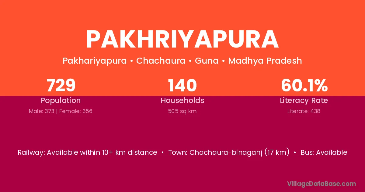 Pakhriyapura village has a total population of 729 people, of which 373 are males and 356 are females.
