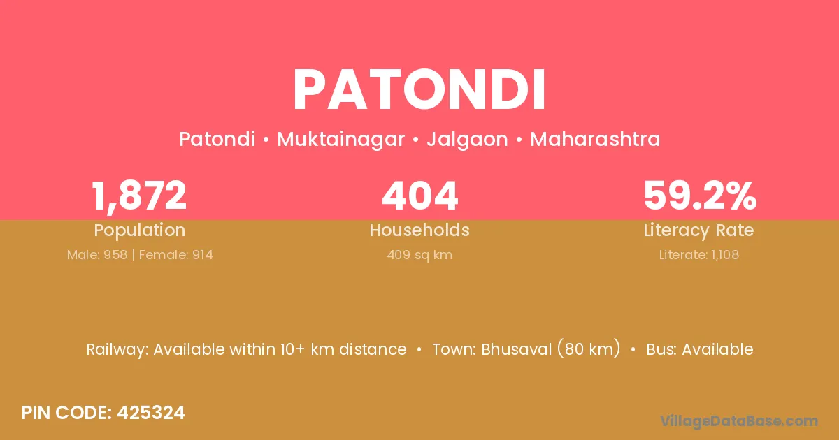 Patondi village has a total population of 2,020 people, of which 1,047 are males and 973 are females.