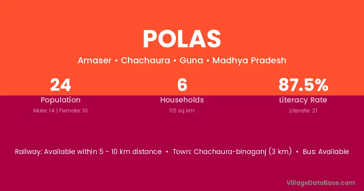 Chachaura-binaganj (3 km) is the nearest town to Polas village for major economic activities and is located approximately 3 km away.