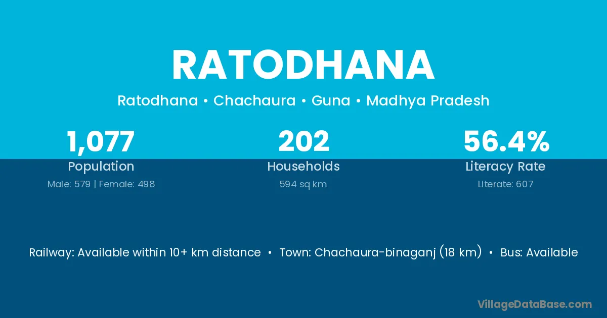 Ratodhana village has a total population of 1,077 people, of which 579 are males and 498 are females.