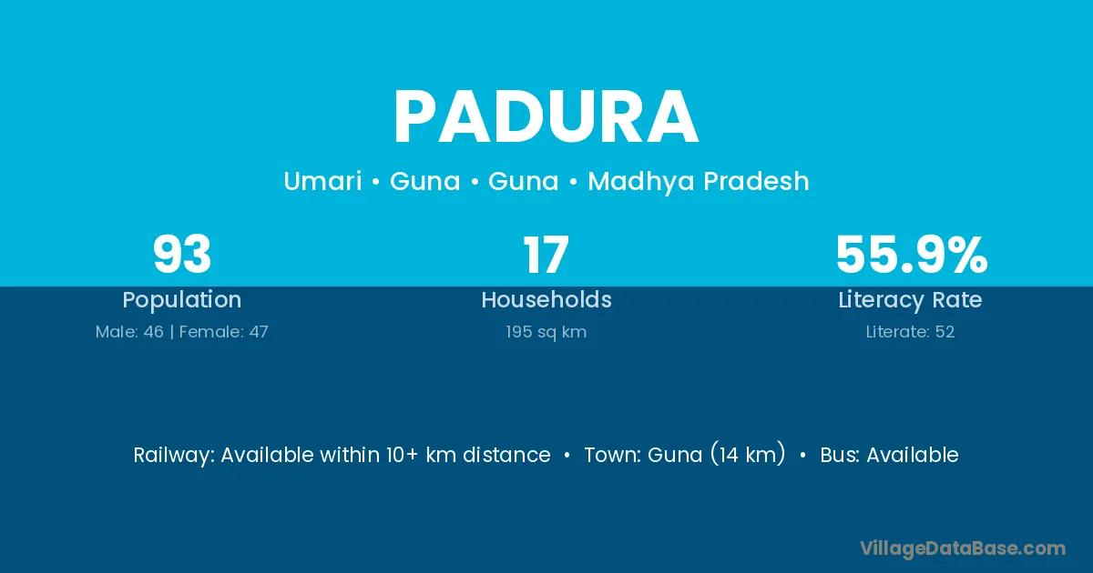 Guna (14 km) is the nearest town to Padura village for major economic activities and is located approximately 14 km away.
