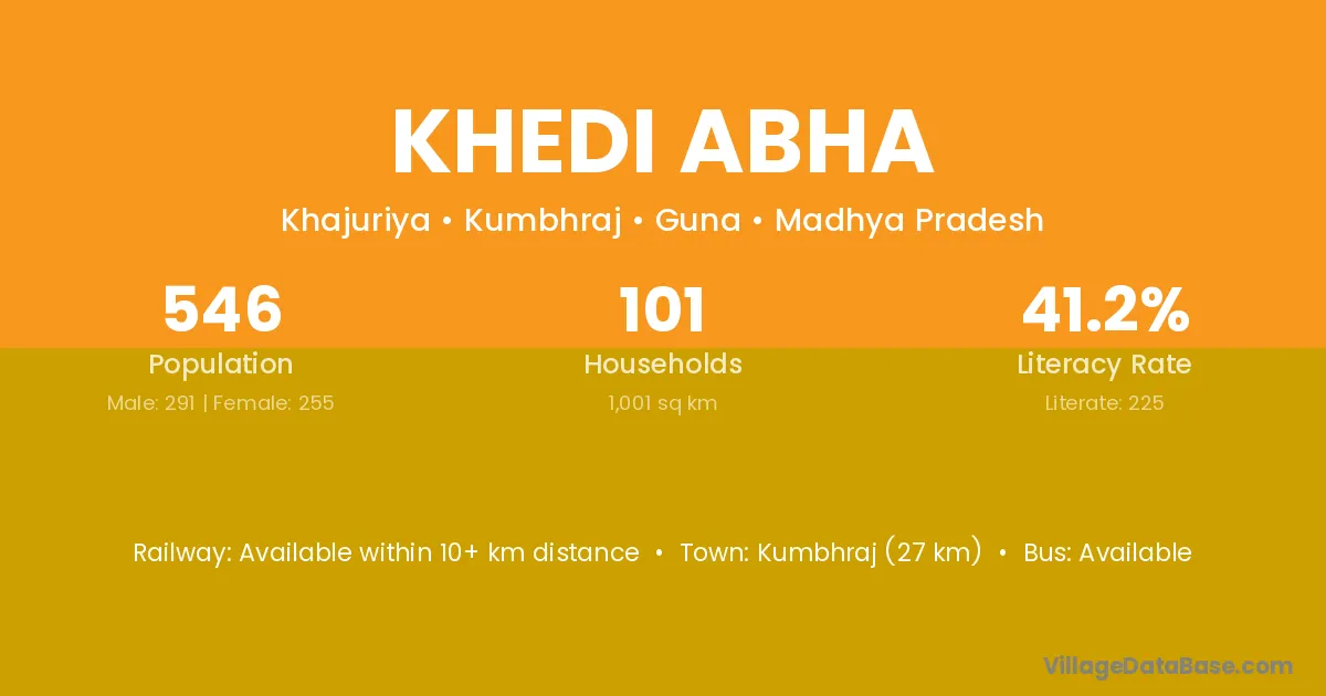 Khedi Abha village has a total population of 546 people, of which 291 are males and 255 are females.