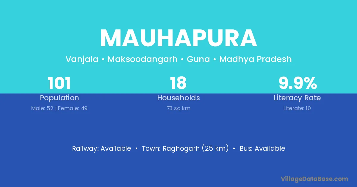 Raghogarh (25 km) is the nearest town to Mauhapura village for major economic activities and is located approximately 25 km away.
